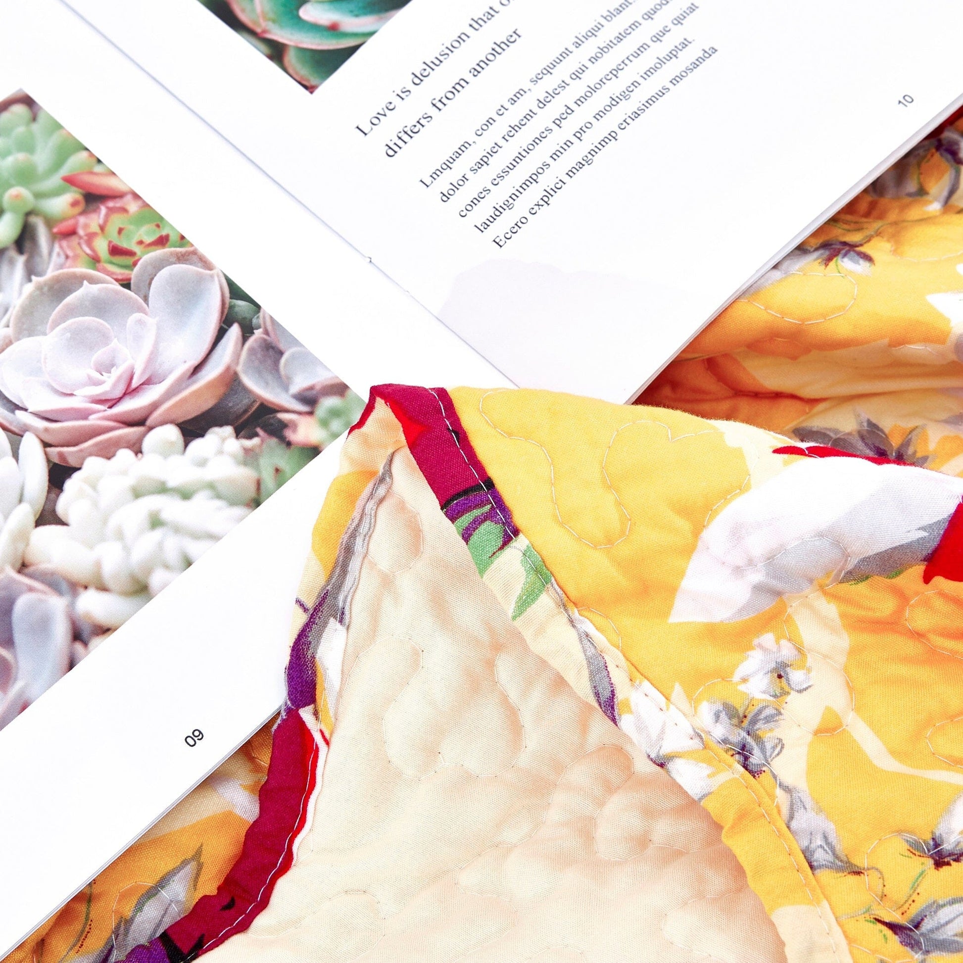 - Backside of the quilted throw is a light yellow background to simplify the throw.